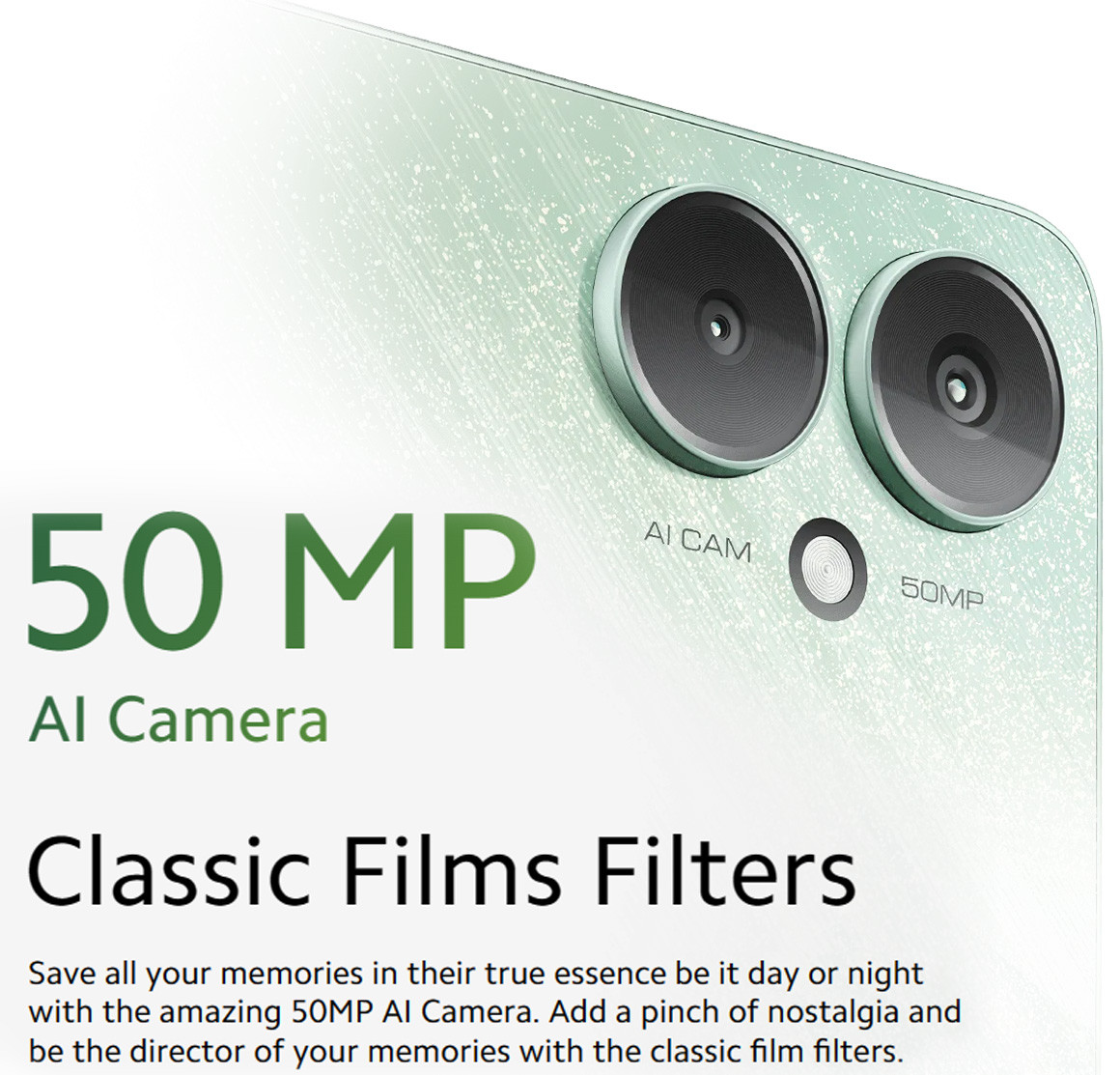 Discover your inner photographer with the Redmi 13C smartphone's 50 MP AI Rear Camera. Each photo is a work of art, capturing details with precision and clarity. From awe-inspiring landscapes to lively portraits, the camera ensures your memories are preserved in exceptional quality.