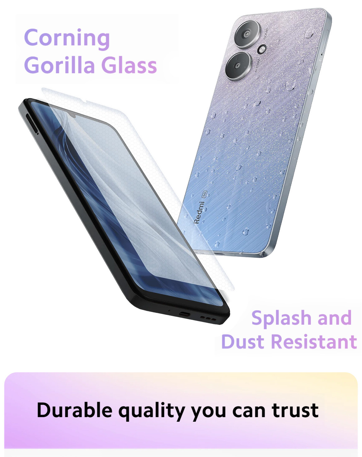 Your Redmi 13C smartphone is more than just a device; it's a fashion statement. The Corning Gorilla Glass screen adds a touch of sophistication while providing robust protection against scratches and accidental bumps. Enjoy peace of mind, knowing your device is designed to withstand the challenges of daily life.