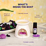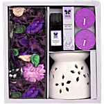 Iris Lavender Fragrance Gift Set, 4 pcs (Vaporiser Jar, Vaporiser Oil, 2 N Tealights, Potpourri With Acetate Box)
