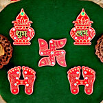 Satvik Shubh Laabh Swastik Laxmi Pair Stickers - Kalash, 5 pcs