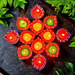House of Festivals Traditional Handiwork Clay Diya - With Colourful Wax, 12 pcs
