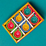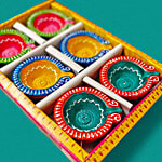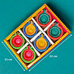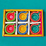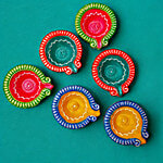 House of Festivals Colourful Base Round Clay Diya, 6 pcs