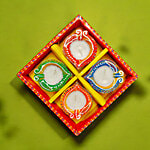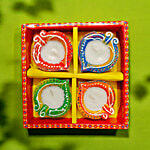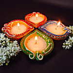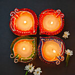 House of Festivals Leaf Shaped Clay Diya - With White Wax, 4 pcs