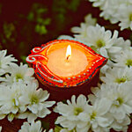 No Question askedHouse of Festivals Leaf Shaped Clay Diya - With White Wax