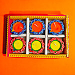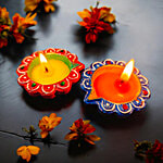 House of Festivals Detailed Flower Design Clay Diya - With Colourful Wax, 6 pcs