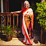 This Bengal polka dot cotton saree features a beautiful Durga Puja print, just in time for the upcoming Durga Puja and Navratri celebrations. Made with premium cotton, this saree is both stylish and traditional, perfect for any occasion. The actual colour may vary slightly due to different screen calibration. Size : 6.3 m including Blouse piece Crafted with Love by House Of Festivals.