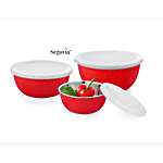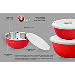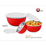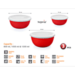 The Segovia Stainless Steel Microwave Safe Bowl Set with Lids is an essential kitchen accessory that combines style, durability, and convenience. This set includes three bowls with capacities of 800 ml, 1 litre, and 1.3 litres, perfect for mixing, serving, and storing food. Each bowl is crafted with 100% food-grade stainless steel on the inside for a safe and hygienic experience, while the exterior is made of sturdy plastic polypropylene, adding a sleek and modern look.