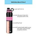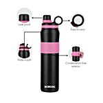 Borosil Thirst Burst Fuchsia Stainless Steel Water Vacuum Insulated Flask Bottle - Black & Pink, 800 ml