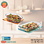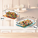 Signoraware Borosilicate Glass Bowl Container Bake N Serve Oval & Rectangular Dish Tray, 2 pcs (700 ml + 1 L)