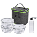 Sanjeev Kapoor Delta Round Lunch Boxes + Borosilicate Bottle With Bag & Gift Box, 400 ml (Set of 3 Container +1 Bottle)