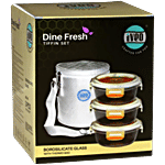 Iveo Borosilicate Dine Fresh Tiffin Set - With Thermo Bag, Black, 400 ml (Set of 3)