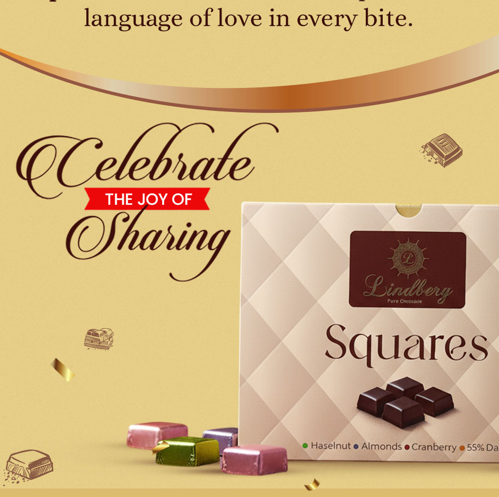 Finally, enjoy the nutty richness of 35% Milk Chocolate with Hazelnut Bits, where creamy chocolate and crunchy hazelnuts create a delightful contrast. Lindberg Squares combine texture and flavour perfectly, promising a luxurious and satisfying treat for any chocolate enthusiast