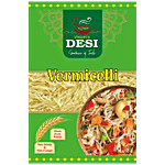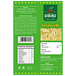 Desi Vermicelli is a ready-to-use product that can be cooked in many ways like sweet kheer with milk and delicious dry fruits, or a savoury upma or vegetable pulao using freshly cut vegetables, spices, and masala. Desi Vermicelli is manufactured in a international manufactuing facitliy to ensure it is non-sticky and does not form lumps while cooking. Have it as a healthy morning breakfast or an evening snack, Desi Vermicelli is easy to cook and tastier to eat, enjoy a generous helping of vermicelli that is ready in very little time.