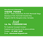 Manufactured & Marketed by: Vision Foods, Site No1, Khata & Assessment, No 55/8, Machohalli Village, Dasanapura Hobli, Kachohalli Industrial Area, Bangalore 562162, Bangalore Urban, Karnataka