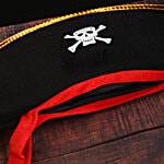 Unleash your inner pirate with this swashbuckling pirate cap hat! Perfect for kids and adults alike, this accessory will transport you to the high seas of adventure. Crafted with meticulous attention to detail, the cap features a classic tricorne design in black felt, adorned with an iconic skull and crossbones emblem. The golden trim adds a touch of opulence, while the vibrant red streamers trailing behind lend an air of daring and excitement. Whether you're attending a pirate-themed party or simply indulging your love for all things buccaneer, this cap is sure to be the centrepiece of your ensemble. Embrace your roguish side and let your imagination run wild with this captivating pirate cap hat!