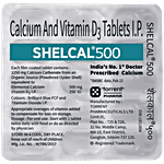 Shelcal 500 Calcium + Vitamin D3 Tablet For Bones, Joints, Muscles Care, 15 pcs