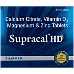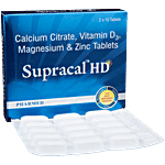 Supracal HD Tablet With Calcium, Vitamin D3, Magnesium & Zinc For Bone & Teeth Health, 30 pcs (2 Strip x 15 Tablet each)