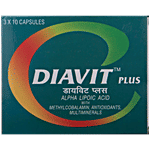Diavit Plus Capsule With ALA, Methyl Cobalamin, Antioxidants & Multimineral, 30 pcs (3 Strip x 10 Tablets each)