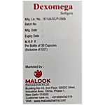 Dexomega Omega 3 Fatty Acids Soft Gelatin Capsule contains omega-3, which can convert into anti-inflammatory substances like prostaglandins and leukotrienes, which are believed to support joints by promoting flexibility as well as mobility and providing pain relief. It helps to promote and maintain a healthy heart and brain and is a rich source of heart-healthy essential fatty acids - DHA and EPA.