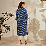 Daali Blue Cambric V Neck 3/4 Sleeves Basics Kurta With Two Pockets
