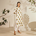 No Question askedDaali White Cambric Mandarin Collar 3/4 Sleeves Basics Kurta With Two Pockets