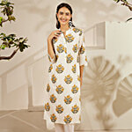 No Question askedDaali White Cambric Mandarin Collar 3/4 Sleeves Basics Kurta With Two Pockets