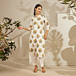 No Question askedDaali White Cambric Mandarin Collar 3/4 Sleeves Basics Kurta With Two Pockets