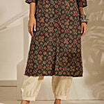 No Question askedDaali Black Cambric Mandarin Collar 3/4 Sleeves Basics Kurta With Two Pockets