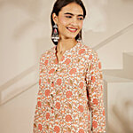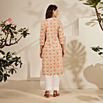 No Question askedDaali Orange Cambric Mandarin Collar 3/4 Sleeves Basics Kurta With Two Pockets
