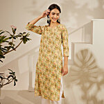 No Question askedDaali Beige Cambric Basics Round Neck 3/4 Sleeves Kurta With Two Pockets