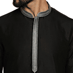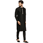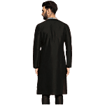 Curate an impeccable look by donning this black regular fit kurta from Kisah. Tailored to sartorial perfection from premium quality fabric, it assures a soft and soothing touch against the skin. The mandarin collar augments its design. Exuding full sleeves, it is sure to fetch you compliments from all.