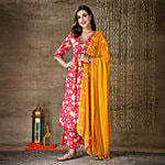No Question askedStylum Pink Cotton Floral Print Kurta With Palazzo & Dupatta