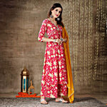 Stylum Pink Cotton Floral Print Kurta With Palazzo & Dupatta, 1 Set (Size - XL)