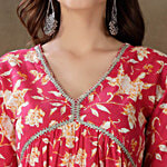 No Question askedStylum Pink Cotton Floral Print Kurta With Palazzo & Dupatta