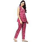 Stylum Dark Pink Printed Top With Pant, 1 Set (Size - M)