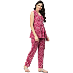 Stylum Dark Pink Printed Top With Pant, 1 Set (Size - XL)