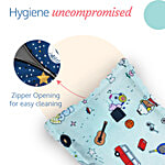 This pillow evenly distributes pressure across a baby’s head, neck, and shoulders, helping to prevent flat head syndrome. Its design mirrors the shape of a baby’s head, offering ideal support and promoting restful sleep. The cover is made from 100% cotton, while the filling consists of pure, therapeutic-grade mustard (rai) seeds. The cover is machine washable on a gentle cycle, without bleach, though the pillow itself is not washable. The unbleached cotton cover ensures maximum comfort for the baby during sleep. Additionally, the cushion provides head support during activities like diaper changes.
