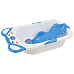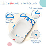 The LuvLap Bubble Baby Bathtub and Anti-Slip Baby Plastic Bath Chair are essential items for a safe and enjoyable bathing experience for infants and toddlers. The bathtub, featuring a sleek white and blue design, measures 87.5 cm x 53.5 cm x 22 cm and includes a convenient drain plug for easy water release. It comfortably accommodates children aged 0-3 years and weighing up to 10 kg.