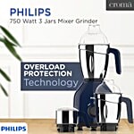 PHILIPS 750 Watt 3 Jars Mixer Grinder (Turbo Motor, Premium Blue), 1 Unit