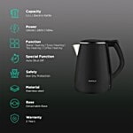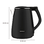 HAVELLS Aqua Plus 1250 Watt 1.2 Litre Electric Kettle with Cool Touch Outer Body (Black), 1 Unit