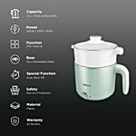 Havells India HAVELLS Capture 650 Watt 1.2 Litre Multi Cook Electric Kettle with Auto Shut Off (Light Green), 1 Unit