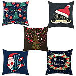 Pearlfiesta Merry Christmas Characters Designer Sofa Cushion Covers - Square, Decorative Printed, 5 pcs