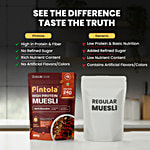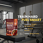 Start your day with a powerhouse of nutrition and flavour with Pintola High Protein Muesli. This delectable blend combines the richness of dark chocolate, the tanginess of cranberries, and the subtle sweetness of brown sugar to create a taste sensation that will delight your taste buds. Each serving of Pintola Muesli packs an impressive 22 g of high-quality protein, making it an ideal choice for fitness enthusiasts, athletes, and anyone looking to increase their protein intake. This protein boost helps with muscle repair and growth, ensuring you stay energised and strong throughout the day. Enjoy the perfect blend of rich dark chocolate and tangy cranberries, complemented by a hint of brown sugar. This delightful combination not only satisfies your sweet cravings but also offers a gourmet taste experience, transforming your breakfast or snack time into a moment of indulgence. Crafted with natural ingredients, Pintola Muesli is free from trans fats and artificial additives. Every bite is packed with nature's best, providing you with a wholesome and guilt-free indulgence that you can feel good about. With a generous amount of dietary fibre, Pintola Muesli supports a healthy digestive system and promotes a feeling of fullness. This fibre-rich muesli helps you manage your weight effectively by keeping you satisfied longer and reducing the urge to snack between meals. Loaded with almonds and superseeds, Pintola Muesli is a nutritional powerhouse. It provides essential vitamins, minerals, and healthy fats that contribute to overall wellness. This nutrient-rich muesli helps maintain your energy levels and supports your body's vital functions. Whether you need a quick breakfast or a healthy snack, this 1kg pack of Pintola Muesli ensures you have a steady supply of nutritious and delicious food at your fingertips. Perfect for an active lifestyle, it offers a convenient and tasty way to fuel your day and indulge in a wholesome treat.