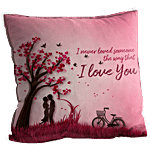 Get the best gift for your better half. A square shaped "I Never Loved Someone The Way That I Love You" Cushion Cover with Cushion Filler from eCraftIndia is a beautiful and romantic cushion cover. It features a pink cushion background with a red cherry blossom tree, and a couple kissing under the tree. The cushion cover is made of durable polyester fabric and has a beautiful finish, making it a perfect addition to any bedroom decor item. It comes with a soft and comfortable cushion filler that adds to the cushion's overall comfort. This cushion cover is a great gift option for anniversaries, birthdays, or Valentine's Day gifts, as it features a romantic quote and a beautiful design. It is also easy to wash and requires minimal maintenance, ensuring that it stays in good condition for a long time.