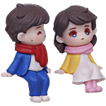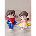 eCraftIndia Cute Boy & Girl Sitting Couple Statue - Decorative Showpiece, 2 pcs