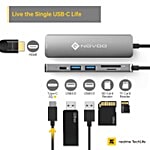 Novoo 6-in-1 USB 3.0 Type C to USB Type C, USB 3.0 Type A, SD Card Slot, TF Card Reader, HDMI Type A USB Hub (5 Gbps Data Transfer Rate, Grey), 1 Unit