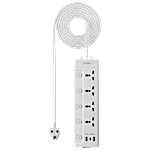 This socket features power indication lights in its switches, providing clear visual cues when the power is on, enhancing safety and convenience. It is equipped with an ISI standard plug and cable, ensuring reliable performance and adherence to quality standards. The cable length of 2 meters offers flexibility in positioning and installation, making it suitable for various setups in both home and office environments. The combination of power indication lights and a robust ISI standard plug with a generous cable length ensures both practicality and safety.