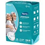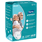 Dignity Premium is an open-style adult diaper with adjustable tabs that guarantee a customised fit for the wearer. With a Leakage Protection Promise for up to 10-12 Hours, Dignity Premium is designed to contain urinary and faecal incontinence in both men & women.