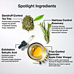 The Anti-Dandruff Hair Serum offers effective relief from dandruff, flaky scalp, and itching with a leave-in, lightweight formula for daily use. It strengthens hair follicles, controls hair fall, and promotes growth while being vegan, colour-safe, and pregnancy-friendly. Free from harmful ingredients like ZPTO, it features proven actives: Tea Tree Oil combats dandruff and controls sebum, Salicylic Acid exfoliates and unclogs pores, Apple Cider Vinegar prevents oil buildup and restores shine, and Rosemary improves scalp circulation. This serum maintains scalp pH balance, soothes irritation, and supports healthy hair for all hair types, ensuring refreshed, flake-free, and nourished results.