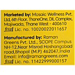 Manufactured by: Raman Greens Pvt. Ltd., SCOPE Campus NH-12, Near Misrod Hoshangabad road, Bhopal (M.P) 462047, India. FSSAI Lic. no. 11422999000157